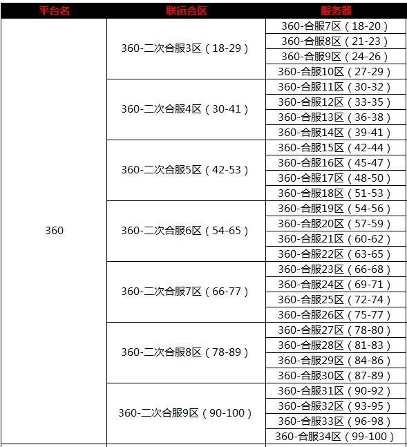 为了让大家有一个更为广阔的战斗和交流的舞台,我们决定于2015年10月14日0:00-10:00期间对以下服务器进行合区维护,维护结束后,以下区服的玩家数据将实现互通,更为激烈的战斗将等待着您和您的团队!