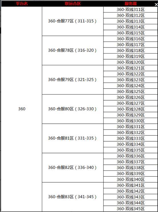 为了让大家有一个更为广阔的战斗和交流的舞台,我们决定于2016年1月14日0:00-6:00期间对以下服务器进行合区维护,维护结束后,以下区服的玩家数据将实现互通,更为激烈的战斗将等待着您和您的团队!