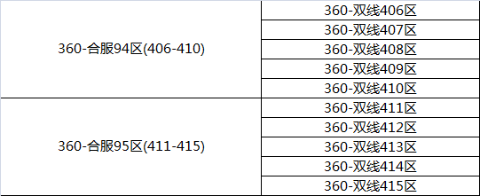 为了让大家有一个更为广阔的战斗和交流的舞台,我们决定于2016年12月29日0:00-10:00期间对以下服务器进行合区维护,维护结束后,以下区服的玩家数据将实现互通,更为激烈的战斗将等待着您!